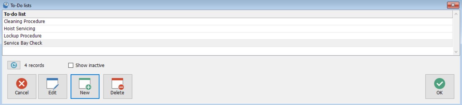From the select checklist display it is possible to add new checklists, edit and delete by selecting the required function from the bottom of the list.
