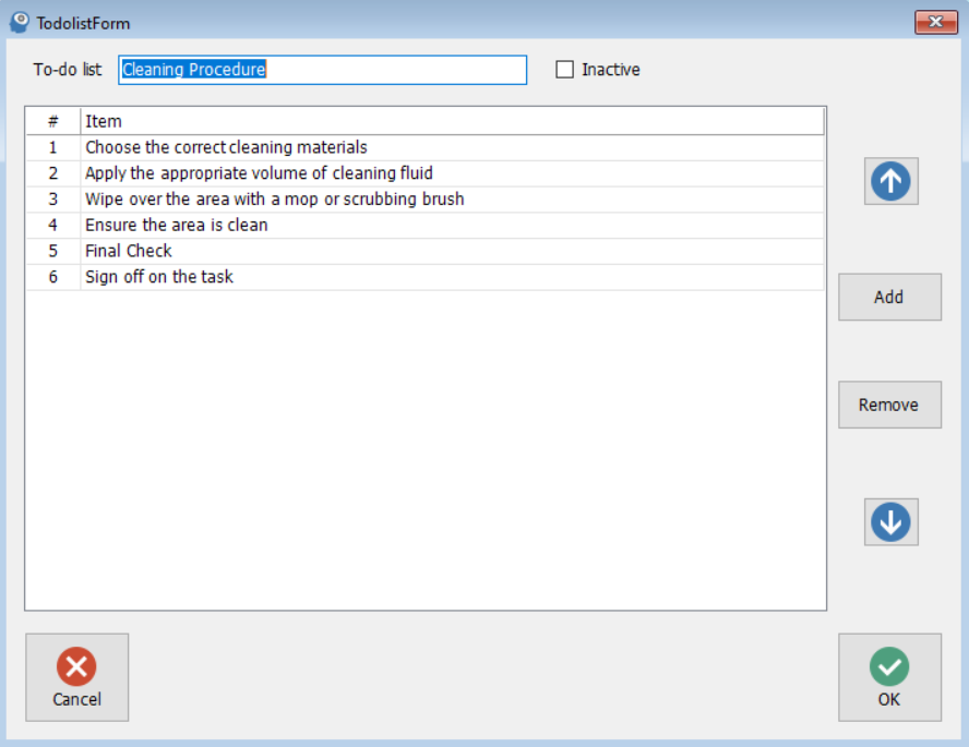 4) Repeat item 3 for each line of the checklist to save the checklist select OK(F12)