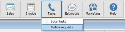Selecting the task option from top of screen will display two option, firstly local tasks which on selection will open the task options. The second titled online request gives you access to your on-line job card communications function.
