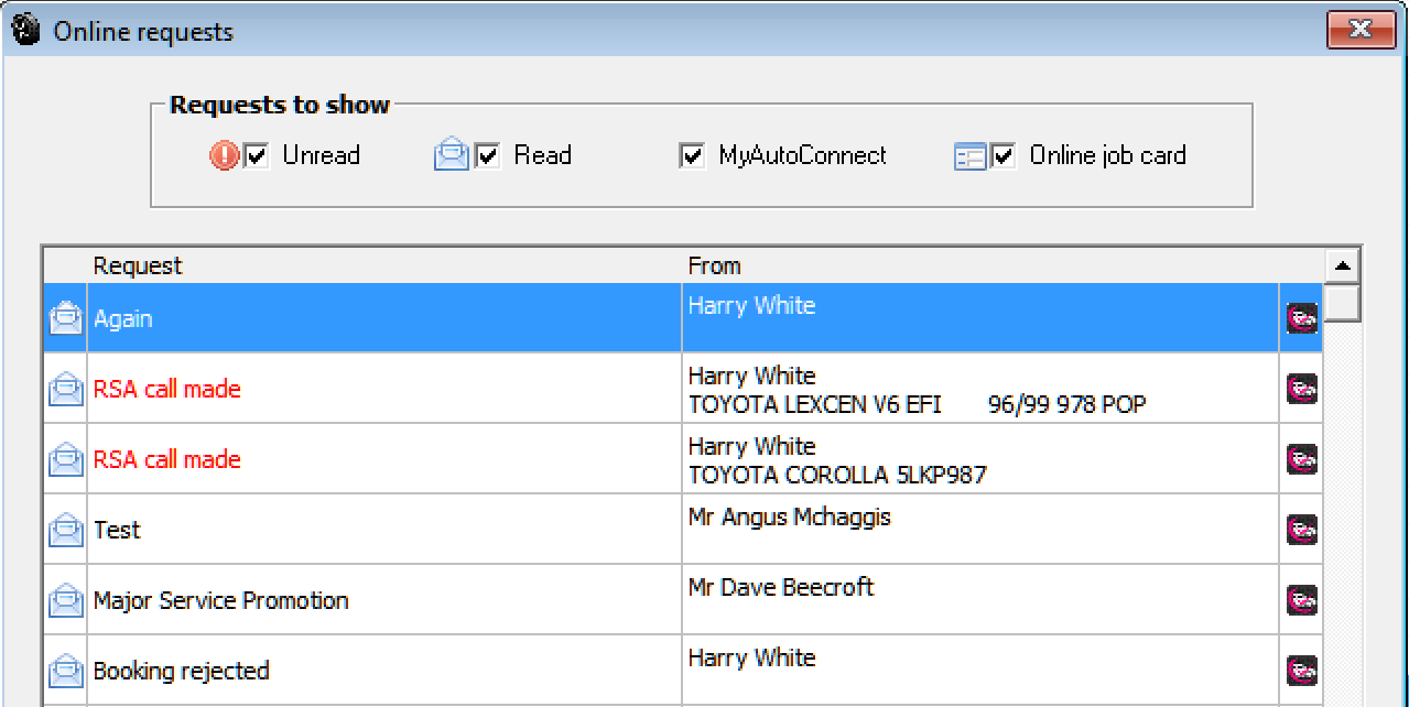 Online Requests: Online requests consist of three types, job close, order and deletion. The job close request on selection will take you directly to the job which requires closing, when the job has been finalised the request will no longer be visible from the communications screen.