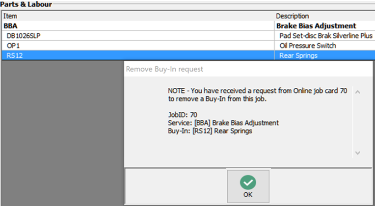 Finally, deletion request for buy-in items, selection will take you directly to the job card displaying details of the item to be removed and highlighting the line item, simply select OK, remove and the option you wish to use from the credit options. You can also filter for specific records by using the filters located at the top of the display.